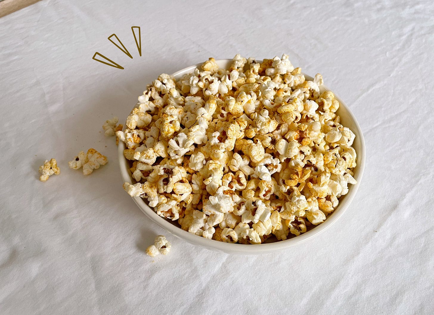 - Drizzle the popped kernels with the olive and coconut oil blend—then add spices and flavourings to taste. So easy and deliciously satisfying. Enjoy!