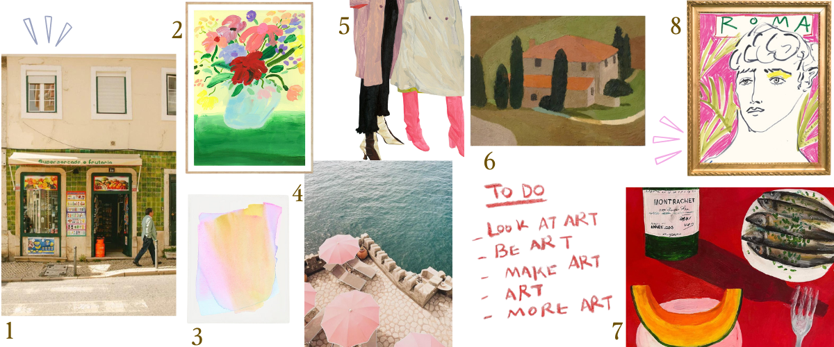 The most important question when looking for art is: how do you want to feel and does this piece make you feel that way? Unlike other furnishings in your home, art doesn’t have a functionality other than evoking feelings. Its singular purpose is to create a mood, atmosphere, and environment for your space. Start by writing down some categories or colour palettes that you’re typically drawn to. Think of memories that bring you joy (places you’ve visited or objects you love). Making mood boards on Pinterest is a good way to find out what tones and styles you’re attracted to. Most of my art falls under the categories of: food, flowers, Europe, female figures, warmth, film photography, abstract, and somehow…birds?