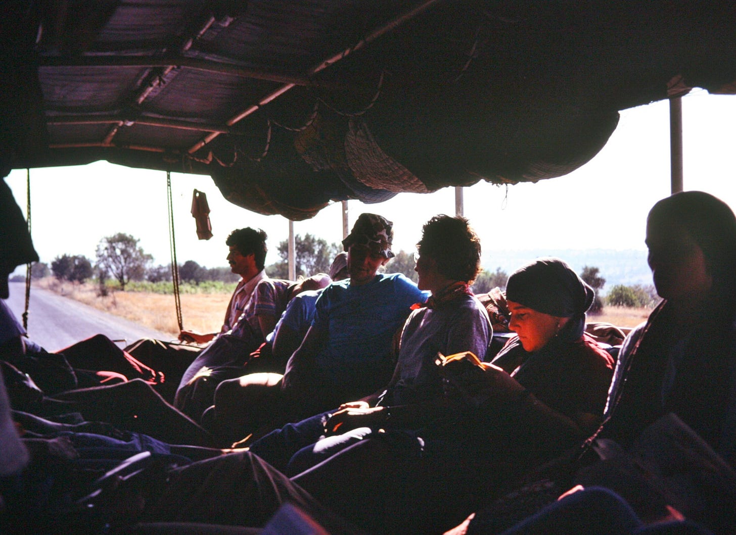 By early afternoon we had reached a pass in the foothills. The military was stopping anyone from going further. Someone heard them say the Russians were attempting to gain control of the pass. I remember thinking to myself: “Why on earth would the Russians be here? There must be some mistake.” After waiting two hours we were formed into a convoy with two other buses and four military jeeps. Two armed guards were stationed to the back of our truck. The seriousness in their faces scared me. They each had machine guns aimed and ready, constantly scanning the hillsides. Unexpectedly, the truck came to an abrupt stop. The bus in front of us had a flat tire. At the same time came the sounds of gunfire. The guards motioned for us the hit the floor and jumped off the back of the truck. There was more gunfire, followed by a period of silence. We glanced at one another on the floor—many of us were laying on top of others due to the extreme lack of space. Our faces showed confusion and concern but, with a long enough silence, our frustrations returned. Throughout the trip we had already dealt with the seemingly slow armies of India many times. Each border crossing tested our patience further with their foreign formalities and policies. Somehow, in this moment, we assumed this was just another one of those formalities. We chose to focus on our personal problems, whispering amongst ourselves about thirst and discomforts. Finally, our guards returned to inform us it was safe to continue. When we reached the city of Herat late that evening no one felt like eating or talking. We had crossed the desert successfully but the celebration would have to wait. We were mentally and physically drained.