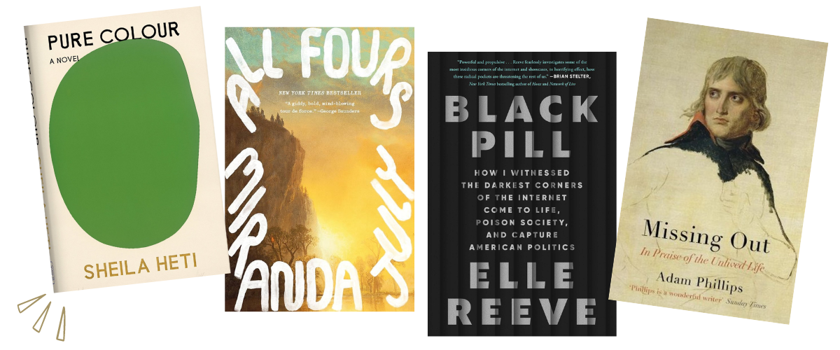 Yes! I just finished Miranda July’s All Fours, which all the world seems to be loving right now. Also, one I couldn’t put down, Elle Reeve’s Black Pill. I’m also diving back into Adam Phillips’ books, and catching up on some new essays from Sheila Heti and Annie Ernauex, both of whom I adore. Now that I’m done writing my book, I’m reading fairly incessantly.