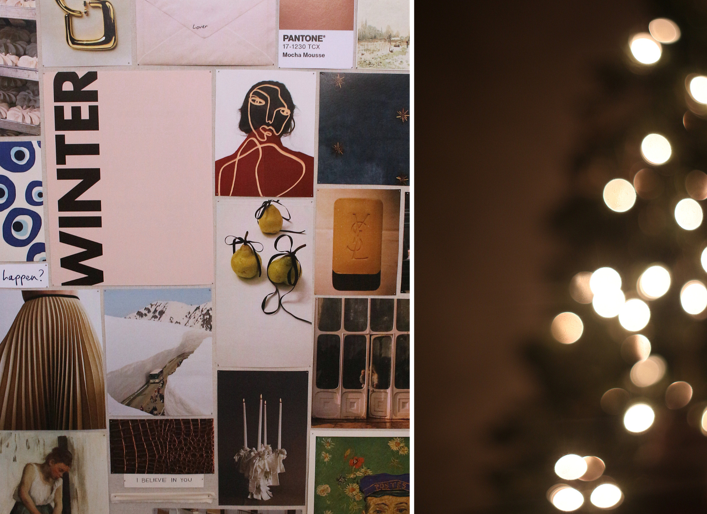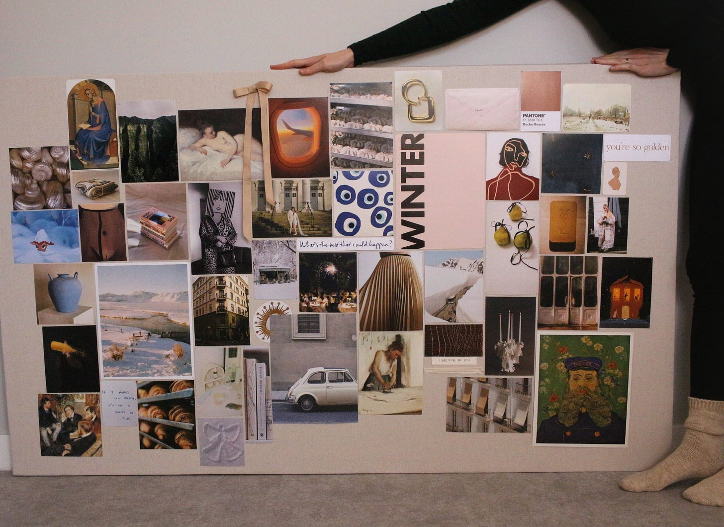 Updating my canvas mood board with the change of the seasons has become such a lovely ritual. Winter’s edition is showcased below featuring snow angels, pavlovas, big windows, glimmers of gold, Copenhagen, and Van Gogh’s postman. If you haven’t already, make sure to check out my guide to making mood boards.