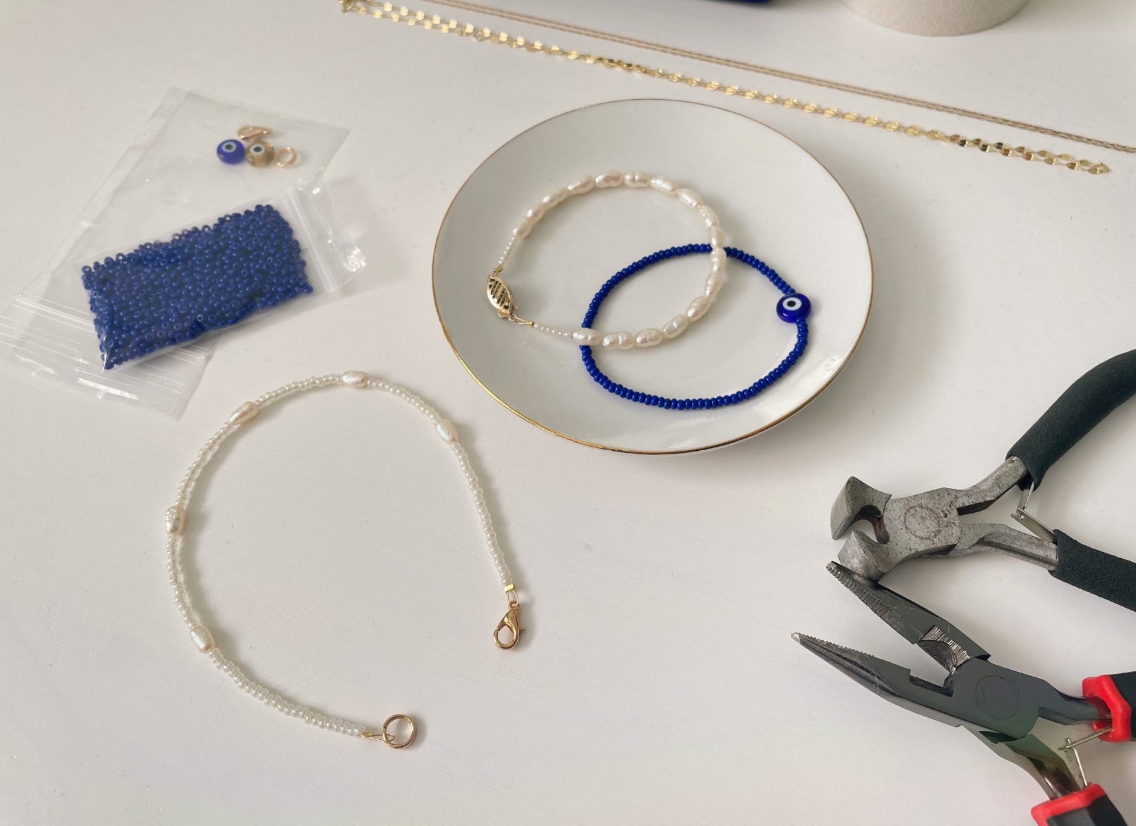My friend and I also made matching evil eye bracelets for a little pop of colour! I might attempt a necklace or keychain next—we’ll see. Here’s some inspo for what I’m envisioning…