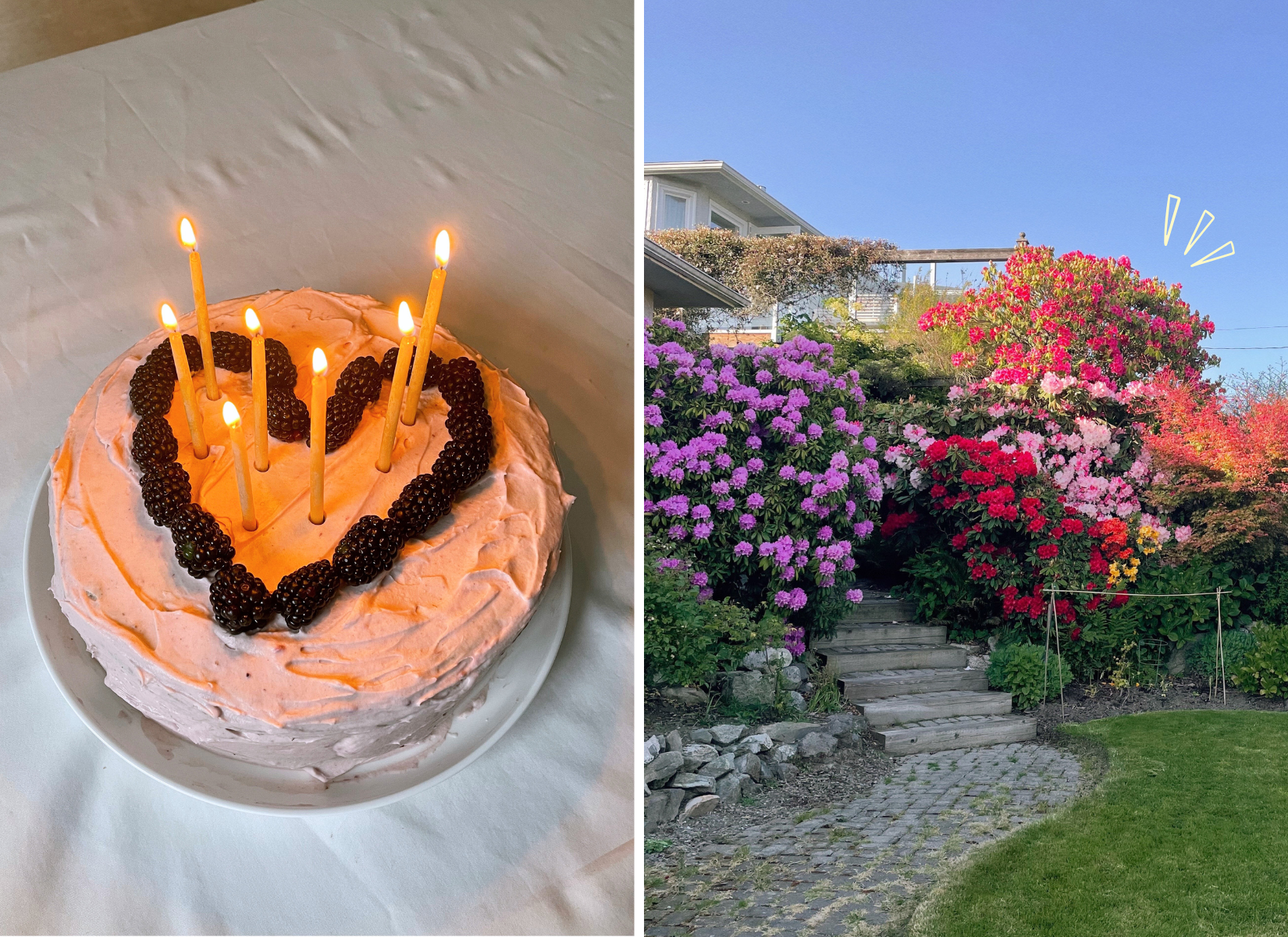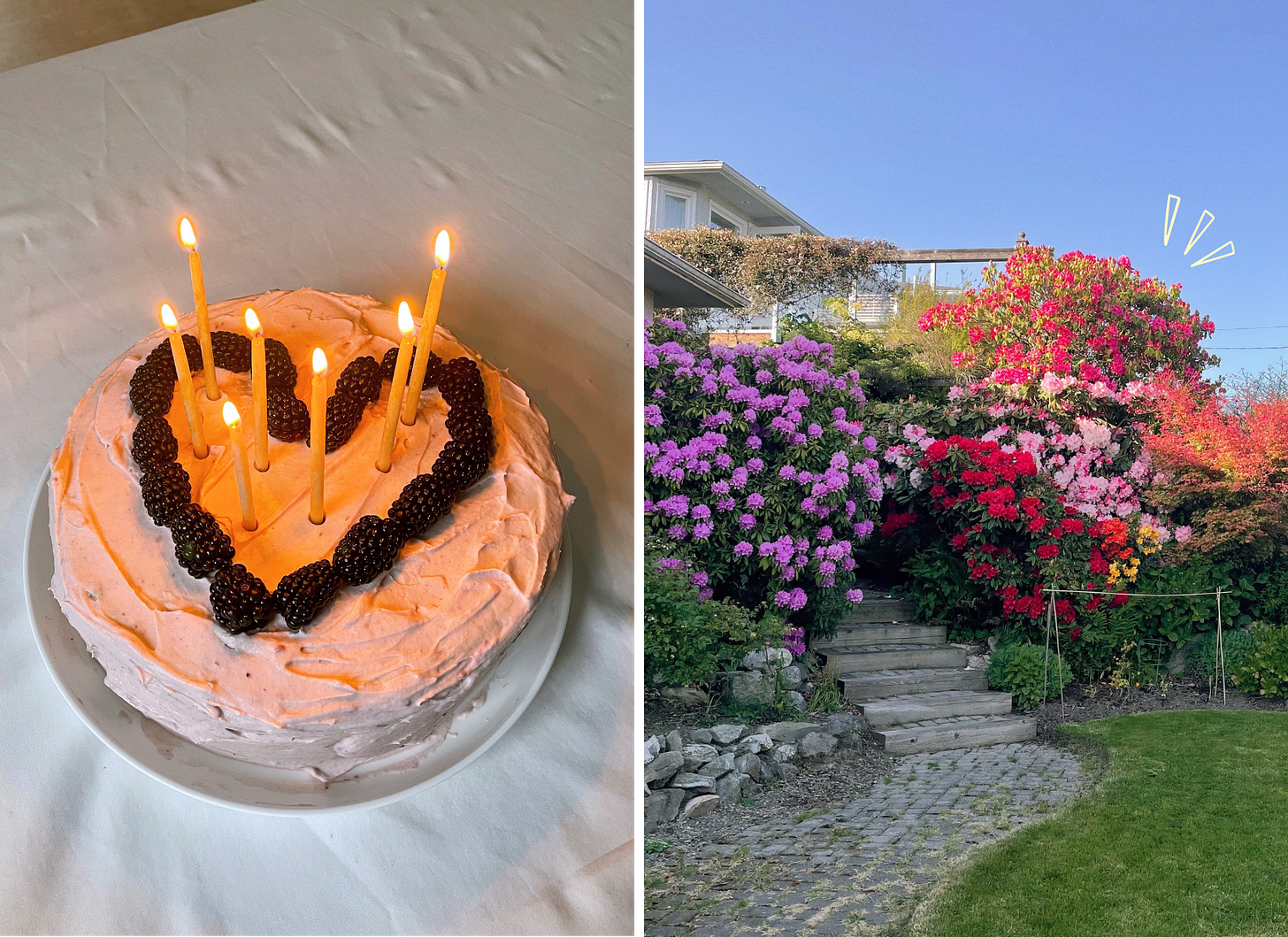 On The Menu: In addition to the chicken fajitas I mentioned earlier, I’ve also been making this easy thai green curry recipe on repeat. I’ll throw in the weekly market haul of vegetables and either shredded chicken breast or fried tofu for protein. This earl grey oatmeal was creamy and citrusy—a real treat for breakfast. Fresh pesto on pasta with prawns has been another staple that takes minimal effort. Then pesto with salmon the next night. But my finest kitchen creation this month was a devil’s food cake with blackberry jam (no I didn’t make the jam!) and cream cheese frosting. An early combined birthday celebration for both my husband and my Dad.