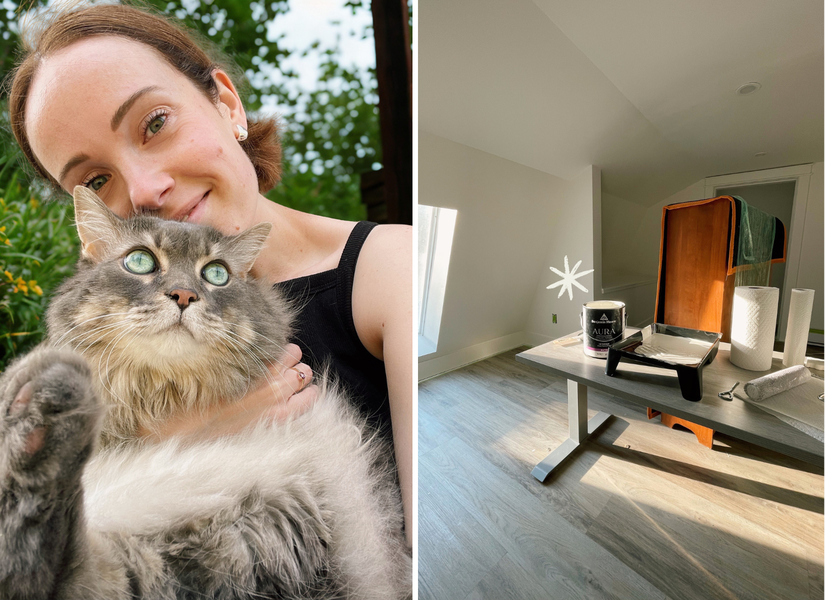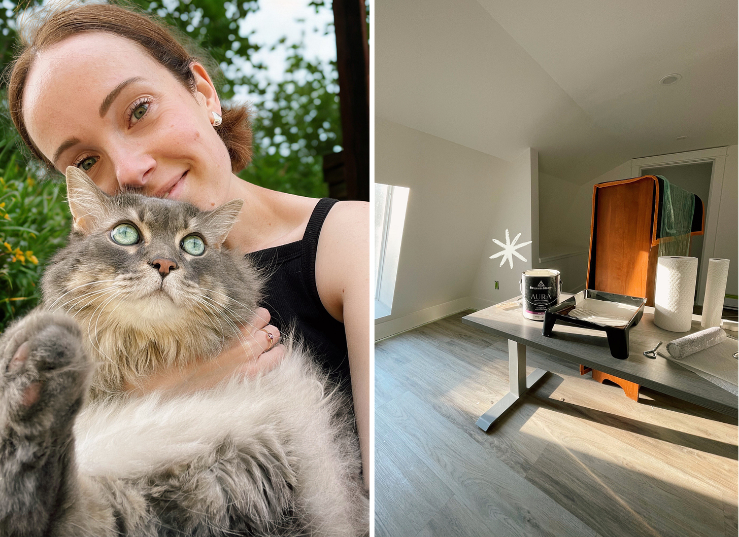 The attic is where my new office setup is going—I feel like Harriet the spy in this room with its barrelled ceilings, built-in benches, and funky angled walls. It required a few coats of paint to freshen things up (and by that I mean cover the graffiti that was so kindly left behind). We went with the shade White Dove by Benjamin Moore and I absolutely love how it turned out. I’ll share more photos next month once I’m settled.